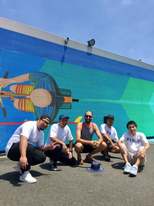 A true to joy to go to Japan again to paint - each trip I have taken I have grown to love more and more the people and the rhythm here. Thats why I named the space “Rhythm Tribe” - and did a simple handstyle logo for them. They eventually brought me out after they opened to paint these roll gates, so I stayed for visit after painting and reconnected with the crew from Numlok, Rhythm Tribe. Lots of talent in the low-key city. Big thanks Hiro and Deep, the whole crew in Hiratsuka, Oiso, Fujisawa, and beyond..